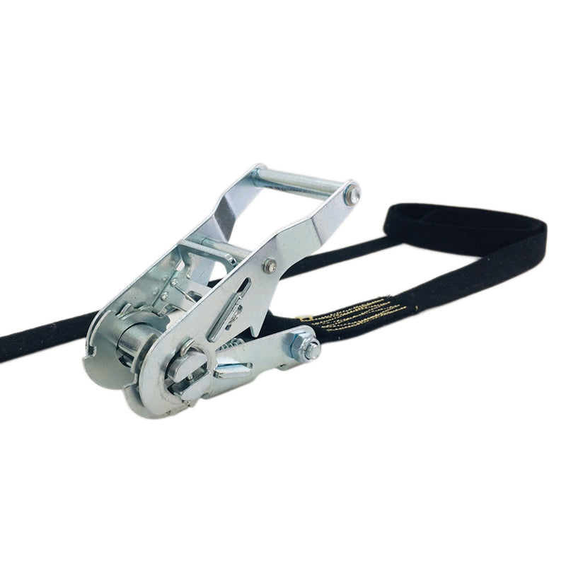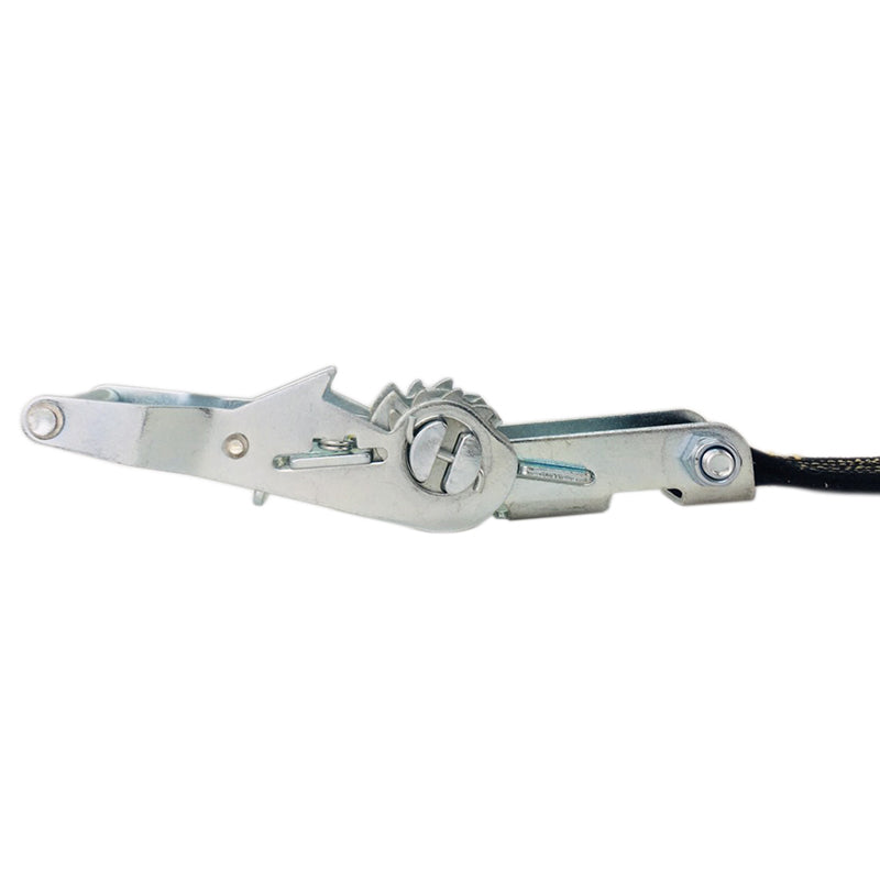 あらゆる荷物の固定・荷崩れ防止に使用する、やさしくがっちりと固定するラチェットバックル式ベルトです。材質は熱に強いアラミドベルトです。