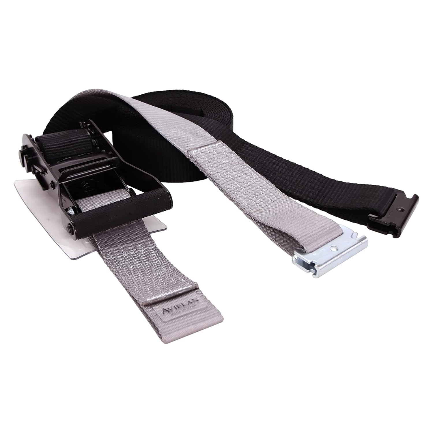 ラッシングベルト 50mm幅 Rフック(トラックレール対応) ブラック/グレー